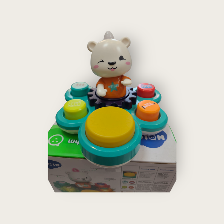 تهیه شده از پلاستیک مقاوم و نشکن ABS، چراغدار، موزیکال، مجهز به دکمه ایجاد صدای طبل، کلید کنترل سطح صدا و چهار کلید برای نواختن سازهای مختلف، با امکان جدا شدن چرخدندهها, ساختار محصول: یک خرس دی جی که چرخدنده بزرگ در اطراف او است، با چرخاندن چرخدنده، افکتهای مختلف صدا