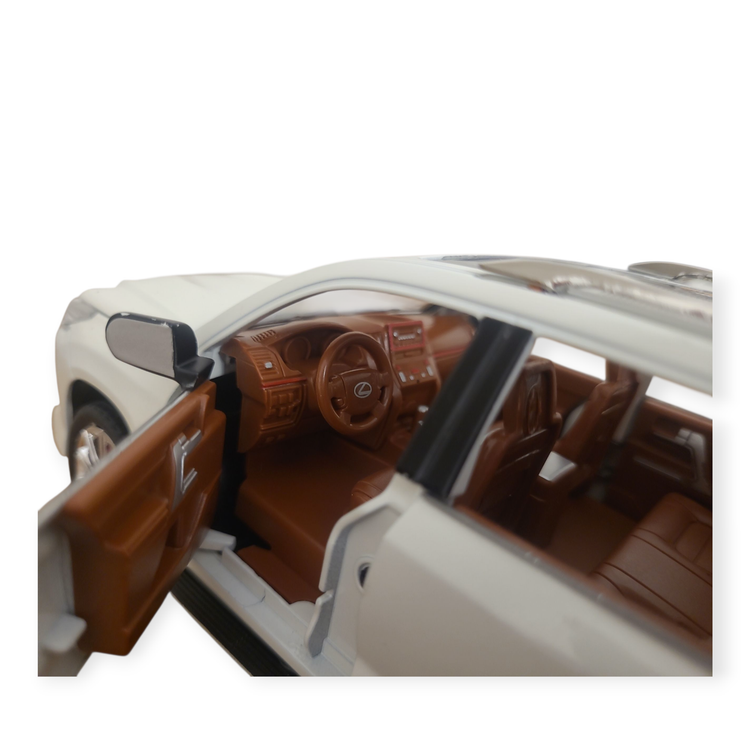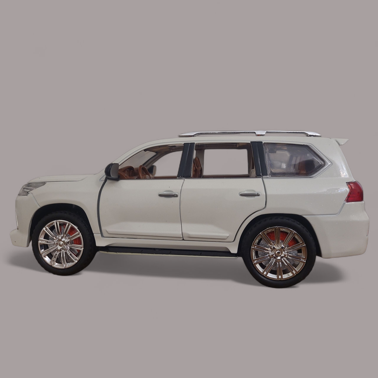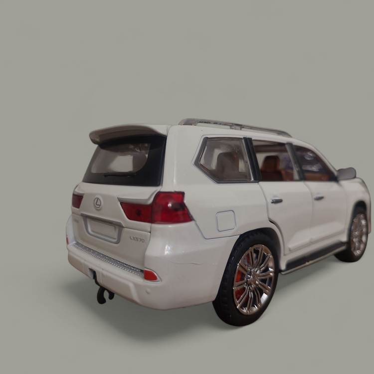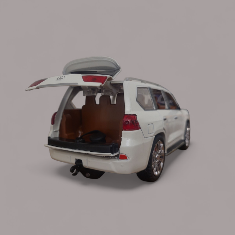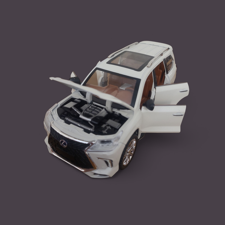 اسباب بازی ماشین فلزی دودزا مدل لکسوس LX570 با کیفیت عالی و رنگ جذاب میتونه بهترین هدیه برای ماشین بازی کودکان باشه. ماشین فلزی اسباب بازی رو به سمت عقب بکشید و رها کنید تا با سرعت به سمت جلو حرکت کنید. این ماشین اسباب بازی چراغ و صدای ماشین هم داره که وقتی چرخ های جلو رو فشار بدید فعال میشن. درب ها، کاپوت و درب عقب این ماشین اسباب بازی باز و بسته میشن و بخار سردی تولید می کند. در زیر این ماشین اسباب بازی دکمه ای قرار دارد که با قرار دادن آن در حالت اول فقط چراغ ماشین روشن می شود و با قرار دادن دکمه در حالت دوم ماشین استارت می خورد و ماشین صدای بوق و گاز از ماشین شنیده می شود.