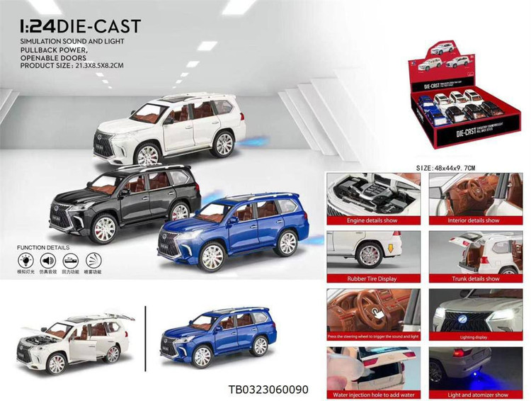 اسباب بازی ماشین فلزی دودزا مدل لکسوس LX570 با کیفیت عالی و رنگ جذاب میتونه بهترین هدیه برای ماشین بازی کودکان باشه. ماشین فلزی اسباب بازی رو به سمت عقب بکشید و رها کنید تا با سرعت به سمت جلو حرکت کنه. این ماشین اسباب بازی چراغ و صدای ماشین هم داره که وقتی چرخ های جلو رو فشار بدید فعال میشن. درب ها ، کاپوت و درب صندوق عقب این ماشین اسباب بازی باز و بسته میشن و بخار سردی تولید میکند. در زیر این ماشین اسباب بازی دکمه ای قرار دارد که با قرار دادن آن در حالت اول فقط چراغ ماشین روشن میشود و با قرار دادن دکمه در حالت دوم ماشین استارت میخورد و ماشین صدای بوق و گاز از ماشین شنیده میشود