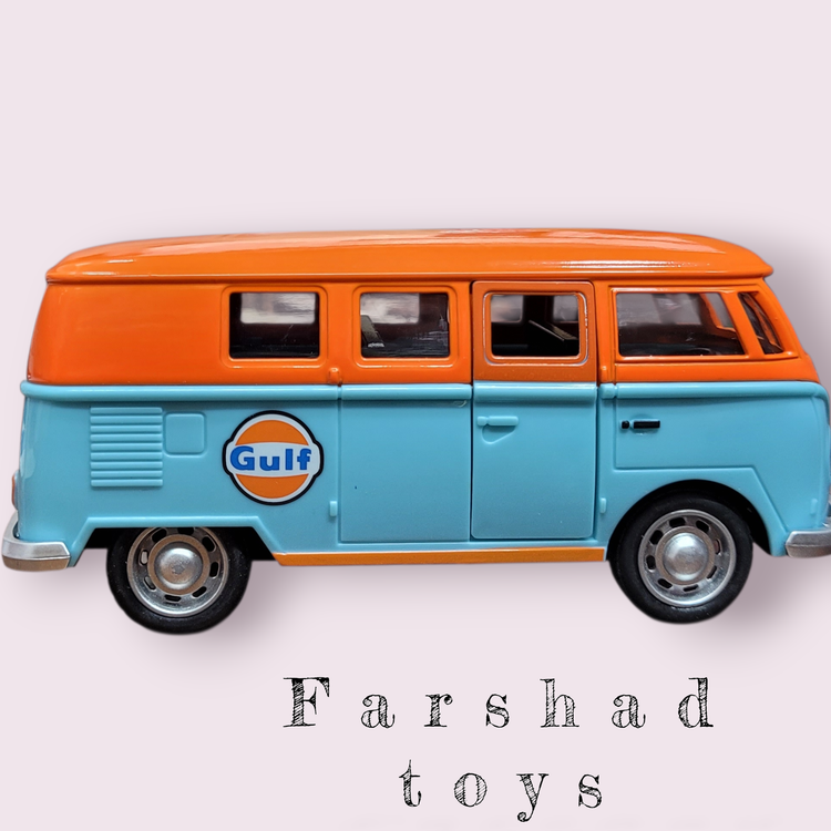 اگر به خودروهای کلاسیک با سبک مسابقهای علاقهمند هستید، ماکت فلزی مینی بوس فولکس با ترکیب رنگ جذاب نارنجی و آبی و طرح ریسینگ GULF یک گزینه منحصربهفرد برای کلکسیون شماست.