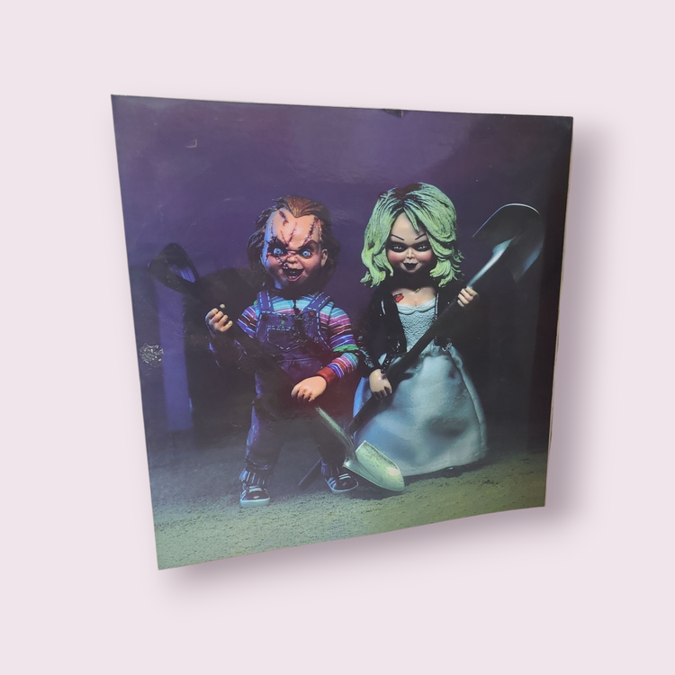 اکشن فیگورهای پلاستیکی بلند 4 اینچی در مقیاس 7 اینچی، کاملا مفصل (با قطعات متحرک) و بسیاری از لوازم جانبی – از فیلم Bride of Chucky، این بسته 2 اکشن نهایی شامل چاکی و تیفانی است. دارای یک دامن پارچه ای و یک ست اضافی بازوهای قابل جابجایی است تا بتواند کت چرمی نمادین خود را بپوشد. این مجموعه همچنین شامل هزاران لوازم جانبی است: 6 سر قابل تعویض، 2 بیل، 2 تپانچه، 2 چاقو، بطری، باستر، گردنبند و موارد دیگر! این فیگورها 4 اینچ قد دارند و بیش از 20 نقطه بیان دارند. بسته بندی جعبه پنجره لوکس مناسب کلکسیونر با دریچه بازشو.