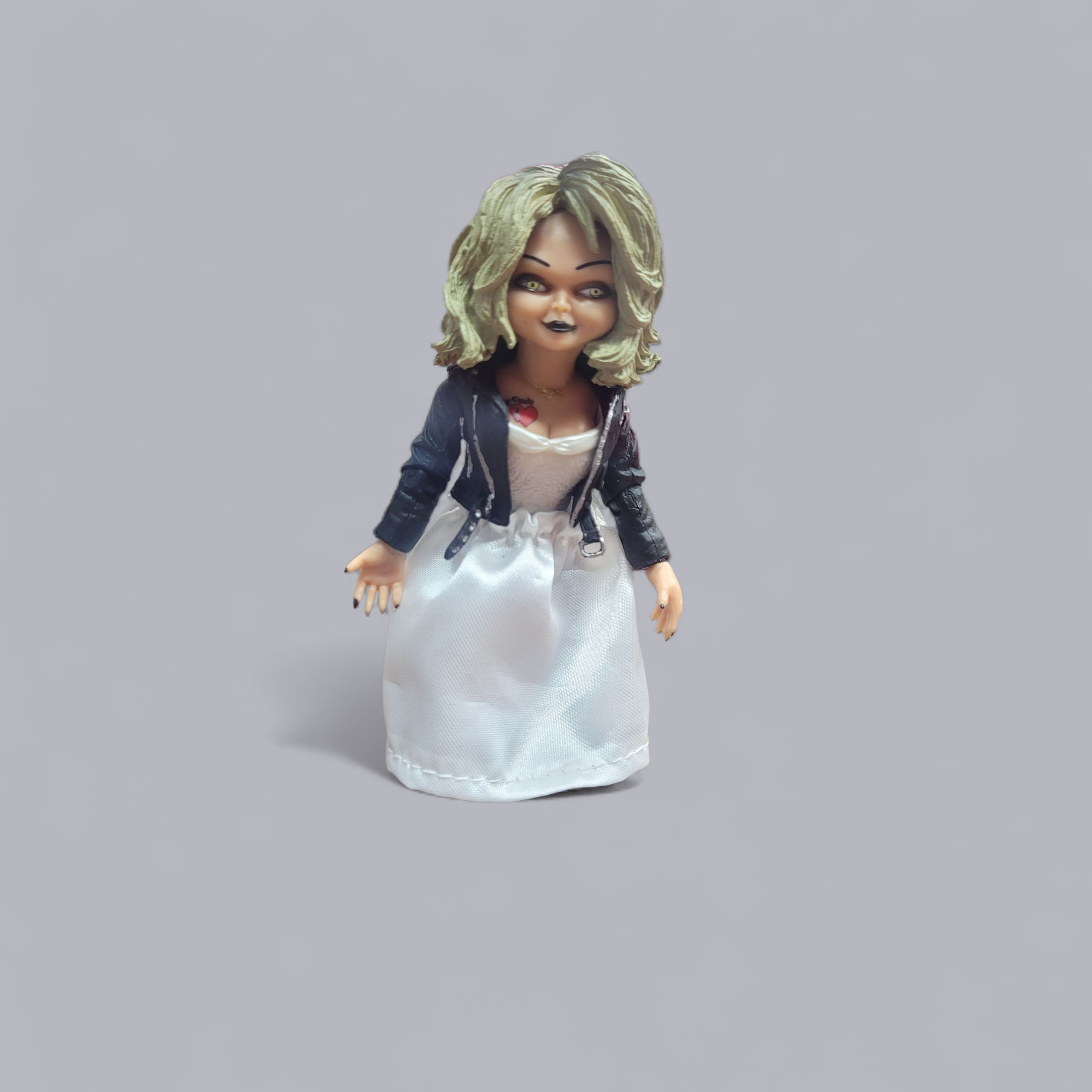 اکشن فیگورهای پلاستیکی بلند 4 اینچی در مقیاس 7 اینچی، کاملا مفصل (با قطعات متحرک) و بسیاری از لوازم جانبی – از فیلم Bride of Chucky، این بسته 2 اکشن نهایی شامل چاکی و تیفانی است. دارای یک دامن پارچه ای و یک ست اضافی بازوهای قابل جابجایی است تا بتواند کت چرمی نمادین خود را بپوشد. این مجموعه همچنین شامل هزاران لوازم جانبی است: 6 سر قابل تعویض، 2 بیل، 2 تپانچه، 2 چاقو، بطری، باستر، گردنبند و موارد دیگر! این فیگورها 4 اینچ قد دارند و بیش از 20 نقطه بیان دارند. بسته بندی جعبه پنجره لوکس مناسب کلکسیونر با دریچه بازشو.