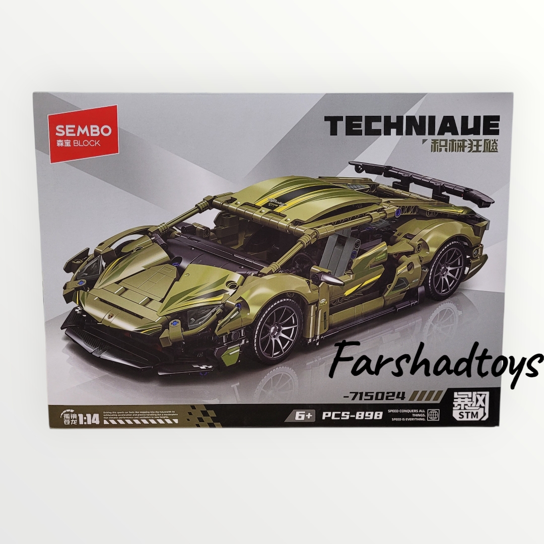 لگو خودروی اسپرت لیمویی Sembo با کد ۷۱۵۰۲۴ است. تعداد قطعات: ۸۹۸ عدد. مقیاس: ۱:۱۴