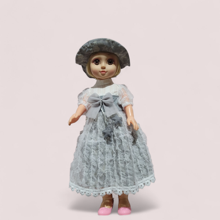 عروسک شیرین کوچولو با لباسهای شیک. دکمه جلوی عروسک را فشار دهید، صدا و نور پخش میکند و توجه کودکان را جلب میکند. آنها دوستان بچهها هستند.